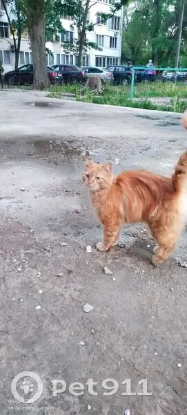 Рыжий кот. Ласковый, отзывается на кис-кис, не пугливый, подходит ко всем. Сходили в магазин, вернулись с кормом. Ел с жадностью, урчал. Обитает сбоку дома 75 на улице Генерала Лизюкова несколько дней уже.