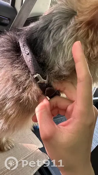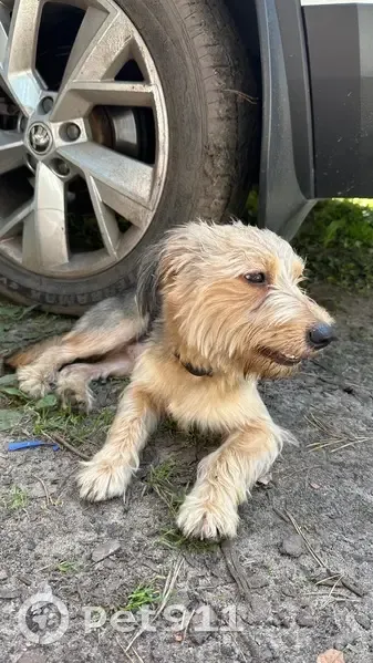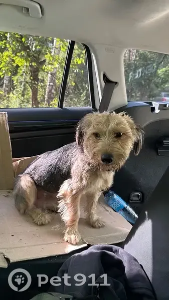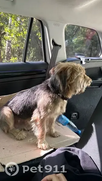Предположительно Йорк терьер 7-9 кг, увязался от родника и шел 3 часа сначала за мужчиной и женщиной, а потом увязался за нами. Есть коричневый ошейник с серебряной собачкой