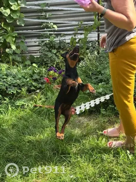 Доброжелательная,ухоженная,игривая собака.Нам пришлось забрать её с улицы,потому что она чуть не попала под машину.Обошли соседние улицы -никто не знает хозяина. Собаке примерно 4-5 мес.Похожа на немецкого пинчера, хвост купирован.Ищем старого или нового хозяина. Обращаться по тел.+7(951)547-05-74