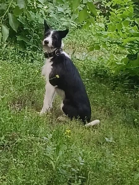Окрас чёрно-белый, маленькая, со шлейкой коричневого цвета, поводок оборван. Ласковая, активная, домашняя, в новом доме быстро освоилась. Бегала по дороге между машинами в районе ближних садов.