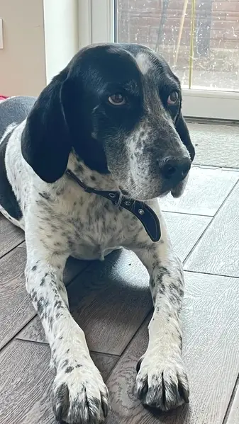 Может кто-то ищет. Белая, с черными пятнами, достаточно крупная. Людей остерегается. Добродушная собака! Не агрессивная совершенно. Ходит вместе с другими уличными собаками.