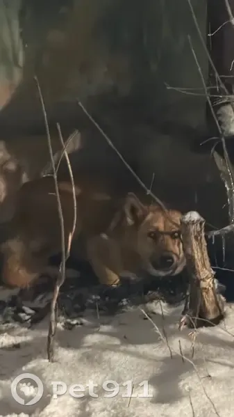 Окрас рыжий, порода неясна, возможно дворняга. Внешне похож на длинношерстную рыжую овчарку. Есть поводок. Пугливый, но не агрессивный Хромает на переднюю правую лапу