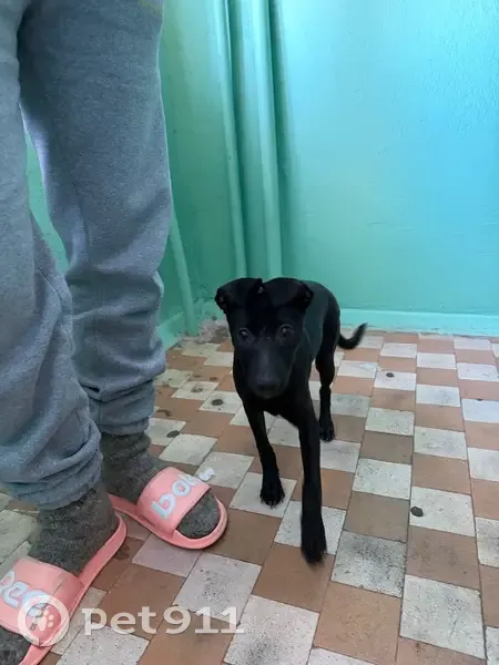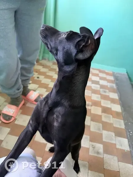 Найдена собака, на вид помесь с доберманом, ещё щенок. Очень контактная, хочет в квартиру, скорее всего потерялась или выбросили. Ходит, скулит, что-то ищет. Пожалуйста, заберите малышку, эту зиму она не переживет.