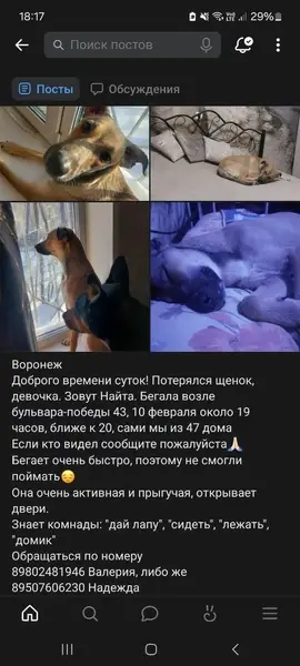 13.03 примерно в 5 ч. утра к АЗС «Газпром» прибилась собака, девочка, ухоженная с ошейником , явно домашняя. Очень испугана, дрожит. Приютили на время, оставить надолго не можем. Грустит. Вероятно, прибежала с частного сектора. Хозяин, найдись!!!