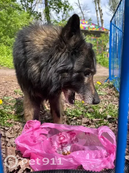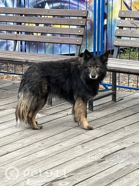 Найдена собака с ошейником в парке аттракционов Динамо. Пугливая, к людям не идет. Скорее всего сбила машина или живодеры. На задние лапы хромает, видимо старенькая. В колтунах и худощавая.