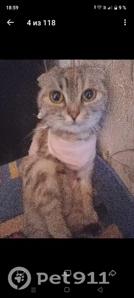 Серая немного с рыжим окрас. Вислоухая. Задние лапки с дифектом от рождения. Маленькая. Возраст 2 года. Свора собак пыталась напасть но я их успела прогнать и кошка исчезла просто убежала куда-то я еë искала практически везде по всём дворам, но безуспешно люди мне сказали что видели еë пытаюсь продолжать поиски просто могли кто-то забрать себе