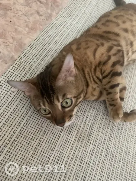 Пятнистный,порода-бенгал,самец,не кастрирован. Кот безумно любим.Хозяин кота находится в больнице, друзья ведут поиски,за помощь в нахождении обещаю большое вознаграждение!!!
