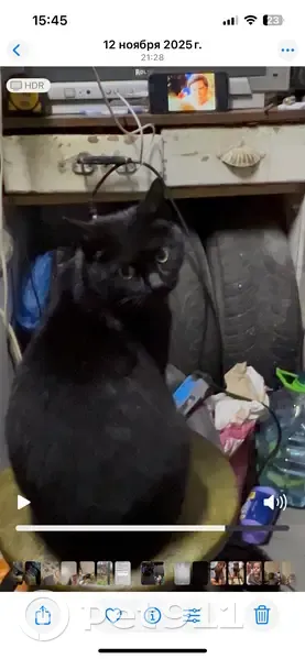 Окрас темно-коричневый при дневном свете,а так кажется черным. Гладкошерстный,упитанный котик. Ему год. Отзывается на Шмеля. Имеет несколько белых пучков на лапках и груди,и несколько светлых волосков по всему туловищу. Игривый,доверчивый котик. Испугался громких звуков,убежал и с того дня мы не можем найти. Прошу,помогите пожалуйста