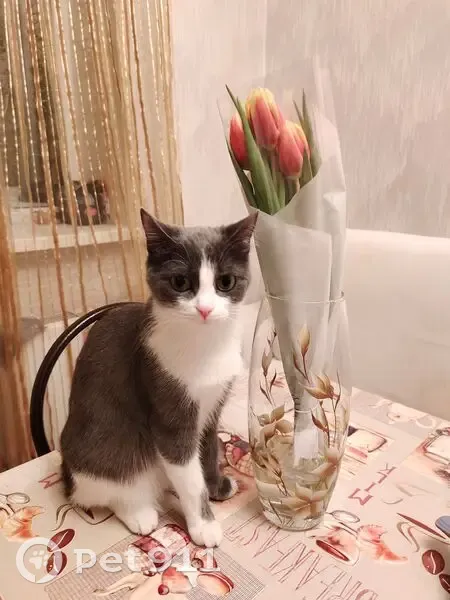 Окрас серо-белый, короткая шерсть. Вообще кошечка пугливая, даже дома боялась прихода чужих людей. Выбежала из квартиры, кто-то из соседей выпустил её из подъезда. Когда кинулись её искать, рядом с домом уже не было
