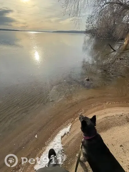 Собака достаточно крупная, черная. Лапы и низ живота с проседью. Была в розовом ошейнике. Откликается на кличку Галя, людей побаивается, особенно мужчин, близко не подходит.