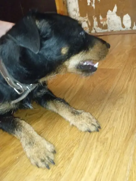 Мальчик, окрас черно-рыжый. Откликается на кличку Рокки.Гуляли с ним, сняли шлейку чтоб вычесать его, а он увидел мяч и побежал за ним. Муж с больной ногой не догнал его.