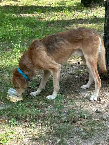 Сабак две. Мальчик рыжий, чуть меньше овчарки. Девочка: белая гладкая шерсть с бледными пятнами серо-рыжими, такого же размера, как мальчик. Убежали за машиной хозяина. На следующий день их видели в районе Айдарово. 8-960-103-05-44