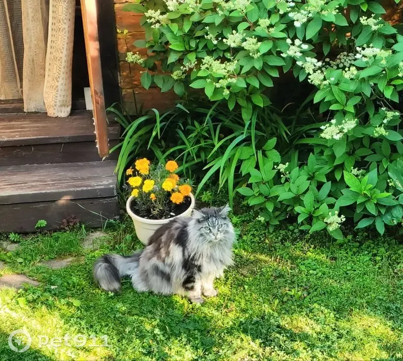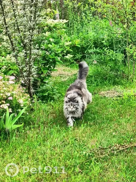 Пропала кошка породы мейн-кун. Окрас чёрный мрамор. 8 лет. Откликается на кличку Фиса. Жила с родителями на даче 2 недели, с участка не уходила. 05.07.2024 в 12.00 её видели в последний раз. Очень пушистая, пугливая. Выделяется сильно нос кирпичного цвета.