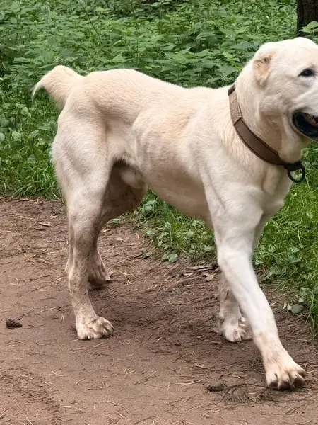 Лабрадор цвета золотисто белого выбежал из дома приблизительно в 23:30, 19 ноября Дружелюбный , любить детей Откликается на имя Ричи