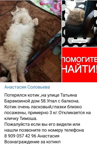 Рыжая, очень пушистая и ласковая. Подобрали на огороде (снт Малиновка), была замёрзшая и очень голодная, сразу забралась в машину.