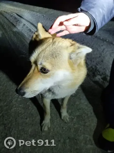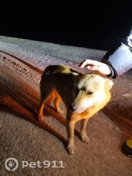 Найдена собака, девочка. Рыже-белая на хвостике темное пятно. Глаза рыжие. Добрая, спокойная, не лает. Боится фейерверков. Сидела на обочине трассы, между Кускуном и знаком Сорокино-Маганск, по направлению Красноярска. Останавливались машины, собака подходила, искала хозяина.