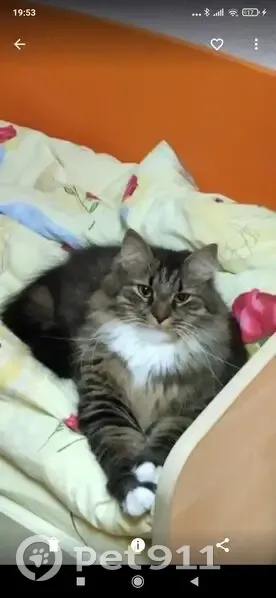 Серенький окрас с небольшими рижими пятнышками на пузике, белое пятнышко на грудке. Может бояться людей потому что кот жил в квартире 9 лет и кроме своих никого не знает поэтому может быть немного пугливым. Отзывается на кличку Марсик и реагирует на потряс вкусняшек когда трясёшь в пакетике. Вывезли без моего ведома, пока я лежала с ребёнком в больнице.