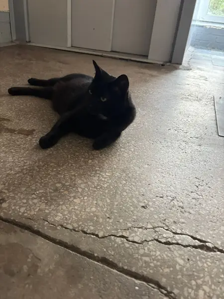 Чёрный кот Худой Без ошейника Боится людей Выпрыгнул с 1 этажа квартиры возле станции Бергановка. Недалеко от Дикси на Магистральной Хозяин умер. Хотим найти