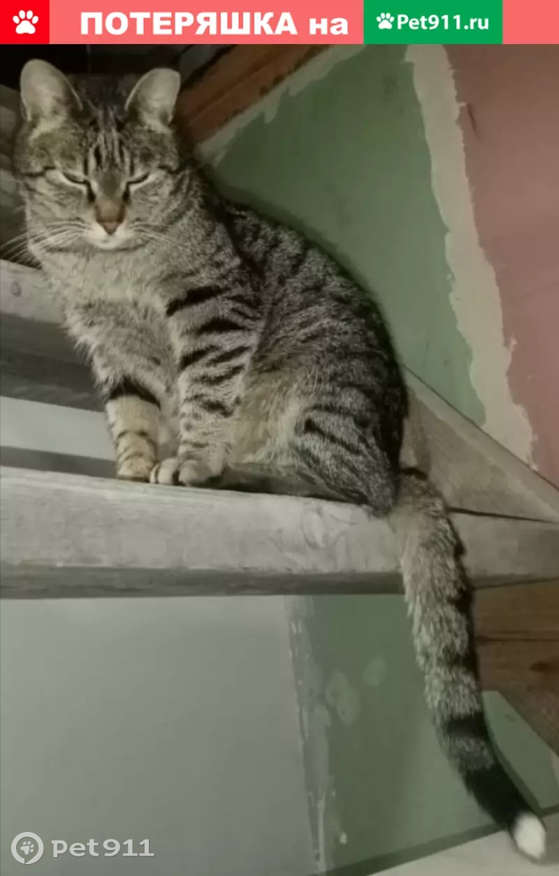 Пропала кошка в Всеволожске: серый полосатый, белый кончик хвоста, срезанное ухо.