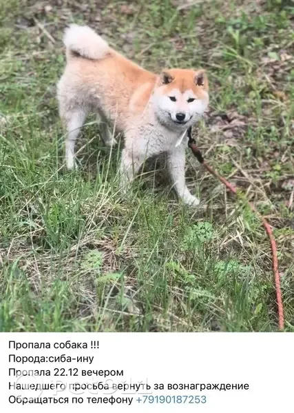 Юма порода сиба-ину.Была в красном бандане-ошейнике.Окрас рыжий с белым.На левом глазу в самом углу шрам от клеща,и на носу с правой стороны ближе к глазу.К чужим не подходит.Сломался поводок и она убежала.