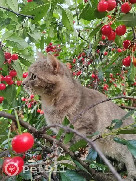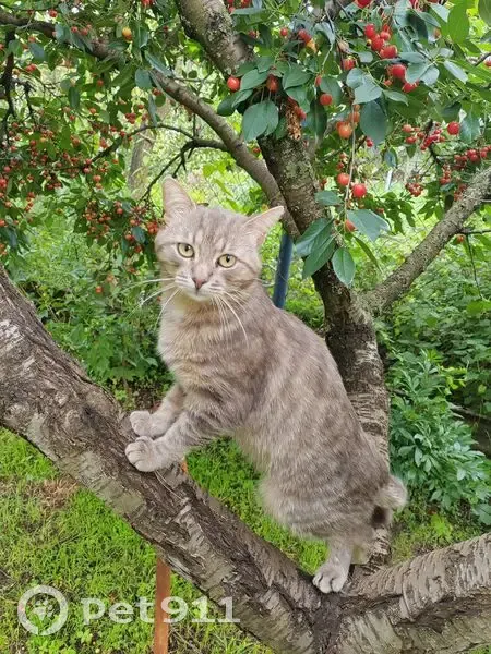 Серый в полоску, живот песочной раскраски, худой, но жилистый. Очень контактный с собаками и людьми. Невысокий в холке, но длиннее, чем обычные кошки. Метис перса и британцы вроде.