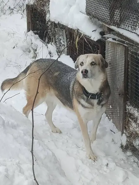 Добрый день! помогите! В г. Высоковск в районе вокзала пропала собака, 19 октября, кобель, порода смесь аляскинского маламута и акиты, 1, 5 года, окрас светлый беж, на носу розовое пятно. Кличка Джим. Очень игривый, может напугать людей своей активностью, но безобидный. Будем благодарны за любую информацию! Огромная просьба позвонить если увидите, но лучше, конечно придержать его. Тел. ... Фото прошлого года Клинский район, Высоковск