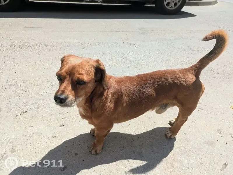Заметил собачку, которая несколько дней назад появилась по указанному адресу. Зачастую сидит около подъездов. Судя по ее породе, на бродячую она не похожа. Не агрессивная и не боится людей. Может быть ее выкинули, а может быть она просто потерялась. Надеюсь, что найдется хозяин или кто-то захочет ее забрать себе