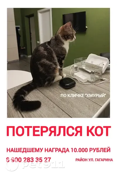Пропала кошка, улица Гагарина, 172/1, Яблоновский - пятнисты серо-черный с белым