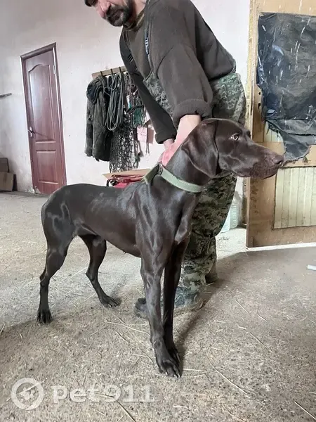 Найдена собака сука породистая с ошейником , добрая , видно домашняя