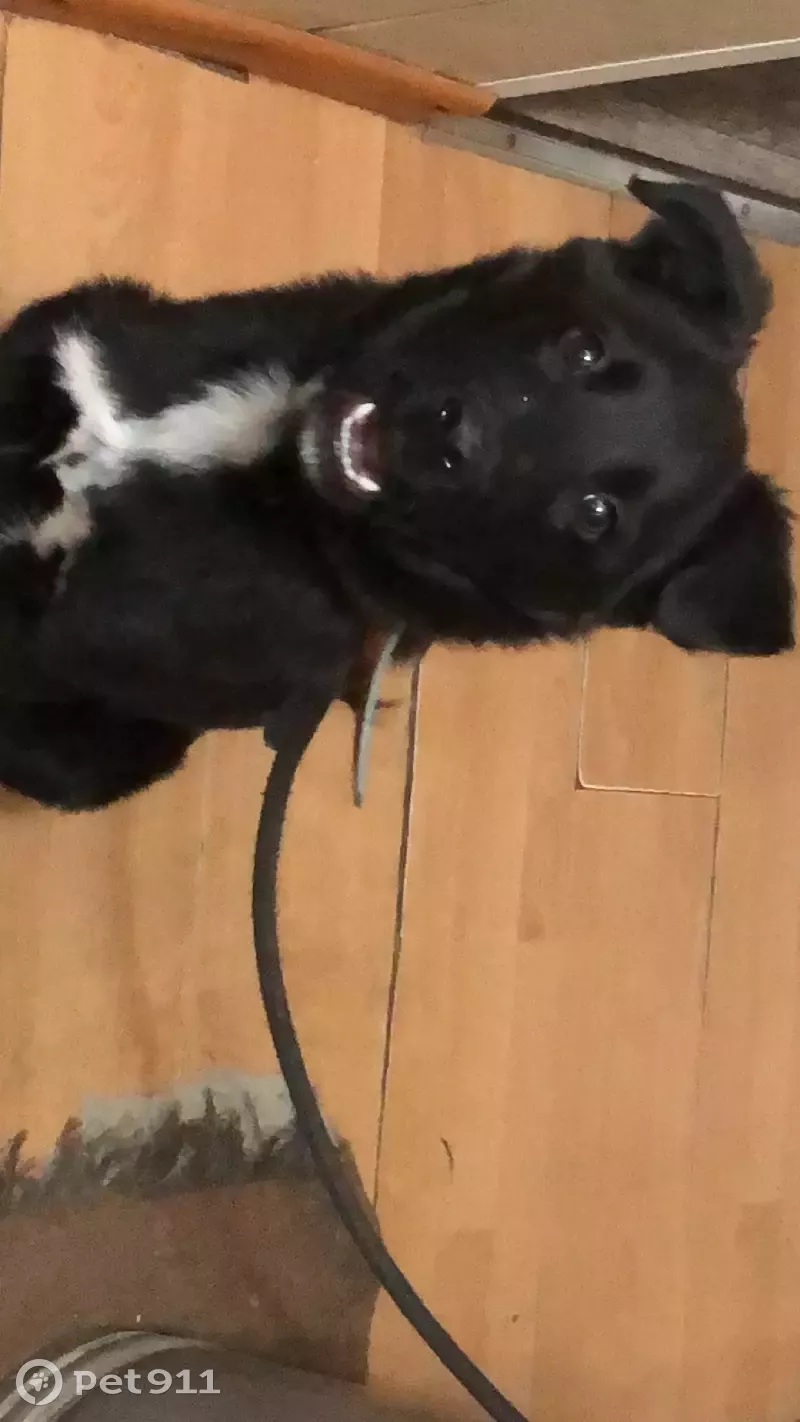 порода Даорняжка смесь с чем то,среднего роста, окрас черный,а лапки белые с пятнами чуть ниже головы по середине белая полоса,он гавкает на людей,так же откликается на свое имя Гуффи,он мальчик,отпускали его на само выгул он умеет так гулять,выпустили его и он пропал,обычно приходил за 1 минуты,а все еще его нет,особых премет у него нет.