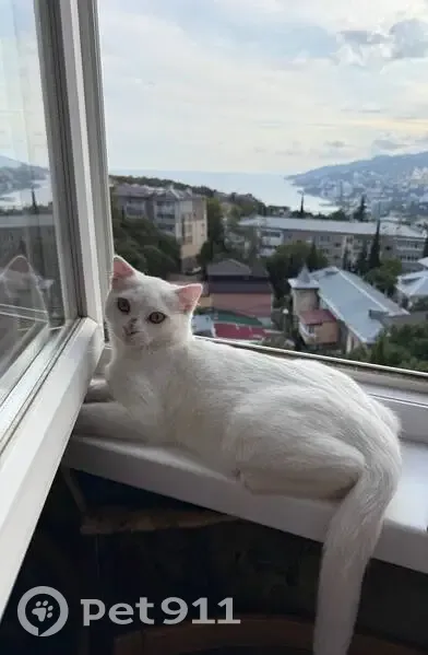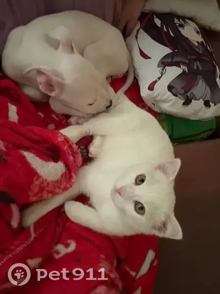 Окрас белый, на носу заживающая ранка. Порода шиншилла, смесь с обычным. Характер спокойный и домашний, но может быть напуган, так как никогда на улице не жил.