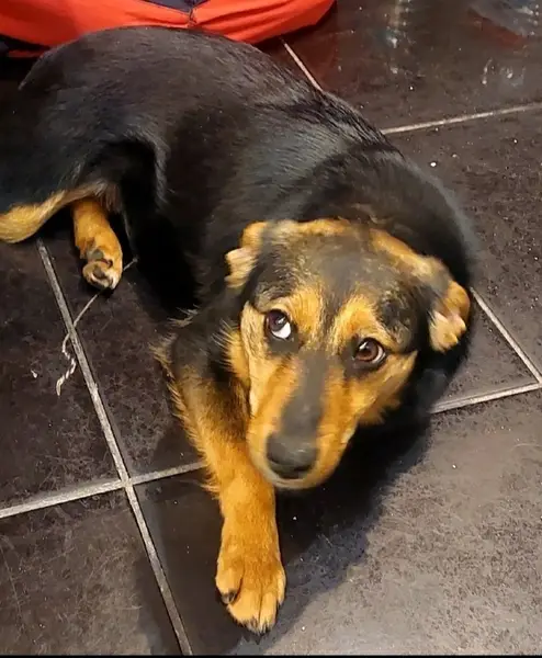 Когда ехала с работы увидела собачку которая бежала за машинами У собачки коричнево-черный окрас,глаза карие, рост до 40см ,3-4 кг,носик черный Мы с мужем вышли и стали подзывать собачку Но на руки она не шла Я решила с ней пойти пешком до дома. За мной пошла она без проблем Очень милая и ласковая собачка . Ночью не может спать одна. Из минусов у собачки воспаление ,цистит ,и когда пугается собачка писается под себя А пугается собачка со всего .Резкий звук ,крик ,шум . И даже резкое касание . Дала объявление на разных сайтах нашего района Но ответа нет Оставить себе не могу У меня уже есть собака Хаски И моя собака не даёт житья мелкой .Кусает .