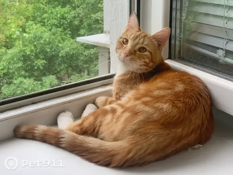 Рыжий кот, примерно 8 месяцев. У него яркий рыжий окрас с белыми лапками и красивыми полосками. Кот очень общительный и ласковый. Совершенно не боится людей, быстро адаптируется к новому месту. Любит играть и исследовать все вокруг.