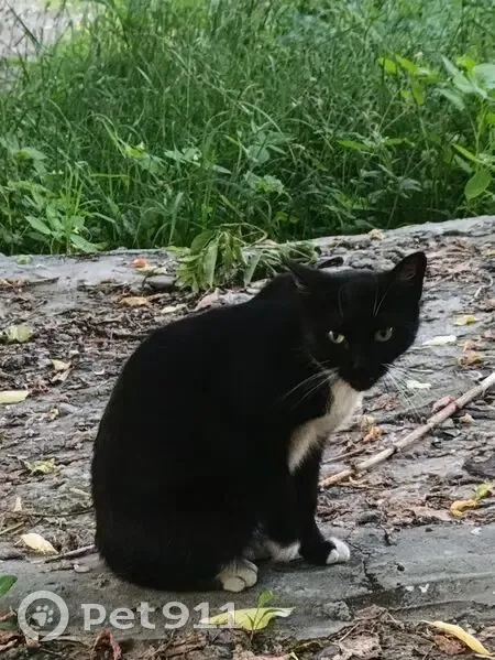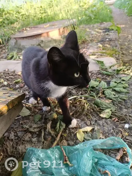 Чей потеряшка? У д/с Русинка. Очень ласковый, чистенький, молодой. Разговаривает с прохожими) не выяснили кот или кошечка. Поел, умывается долго тщательно)