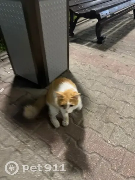 Ласковый кот/кошка, к людям тянется , ошейник есть, рыже-белый окрас Ходит у Ауры, ощущение, что потеряшка