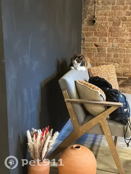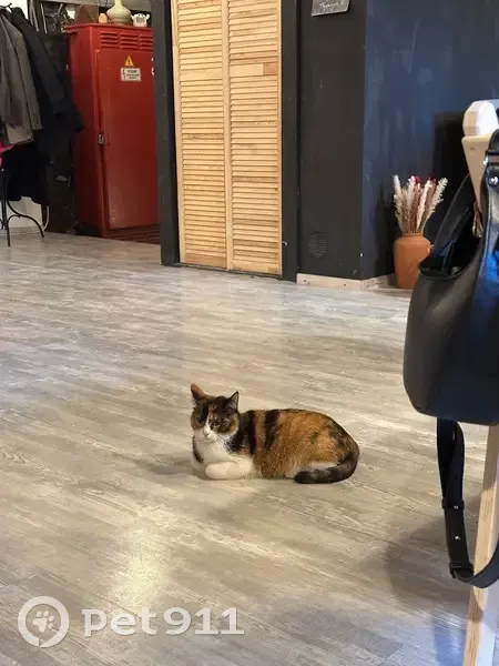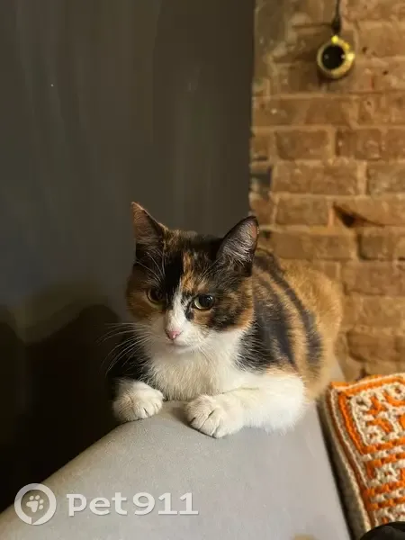Найдена во дворе дома по Ушинского 32. Сидела и мяукала у окна. Не отходила от места пол дня, взяли себе, чтобы не замерзла. На улице подбежала, стала ласкаться. Кошка трехцветная. Ручная, ухоженная, как будто было сбрито пузико, оно розоватое. Ходит в латок.