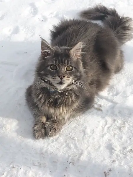 В Зеленом ошейнике , сидела в сугробе и сильно мяукала , дрожит очень сильно