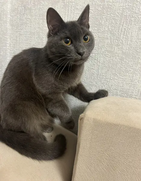 Серая кошка ( предположительно девочка) с коричнево рыжими выкрасами. Контактная .