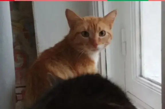 Рыжий кот, или кошка, в ошейнике. Когда кормила бездомных кошек, увидела его/её. Очень голодный, но не лезет в драки за еду, отходит, очень вежливый к другим сородичам. Ко мне не подходил(а), поэтому пол сказать не могу. Начинаются проблемы с глазами.