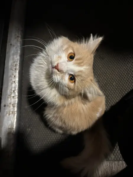 какой пол не знаю, явно домашнее животное, с виду кот, но кто его знает? Напуган, я опасаюсь его трогать проверять. Прижимался к дверям входным.