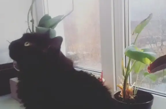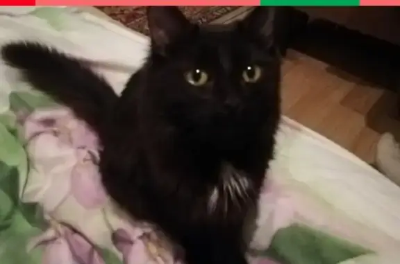 На лестничной площадке найден котик: молодой чёрный мальчик, есть белое пятнышко на груди, чистенький, лоток хорошо знает.