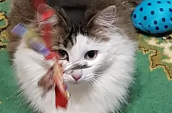 Найдена миниатюрная кошечка, окрас бело-серый, пушистая и очень грязная, есть колтуны. На шее ошейник от блох. Появилась около этого дома с 11 апреля, сейчас живет в подвале, от дома не отходит. Видно что была домашняя, потому что к людям бежит ластится, собак не боится. Озорная и на вид 1-2 года. Хозяева отзовитесь пожалуйста шикарная кошечка