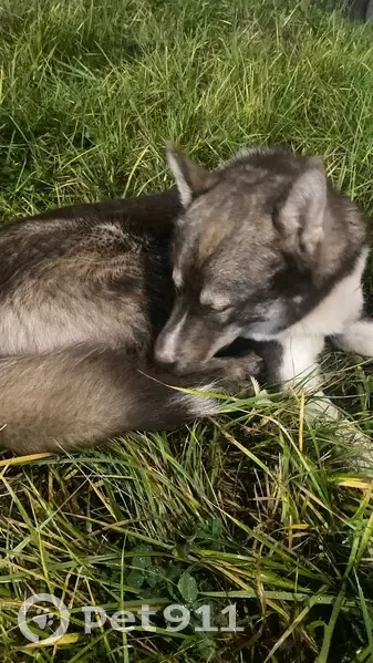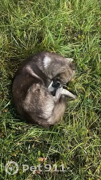 Серо коричневый, ухоженный, видно что или хаска или близкий метис, добрый, контактный, ждёт у магазина давно. Хозяина в магазине нет. Ухоженный, без следов цепи или ошейника