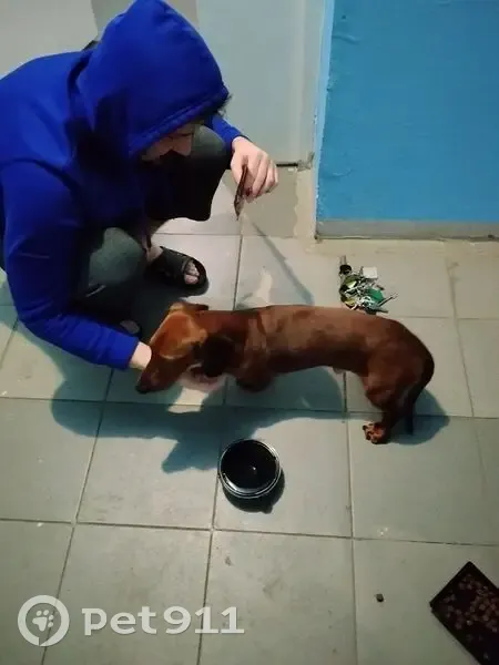 Такса. Кобель. Бегал у магазина "Магнит" На Пашуковской. Контактный. Ест сухой корм. Есть небольшое обморожение. Ищу хозяев. Пристроили только на два дня.