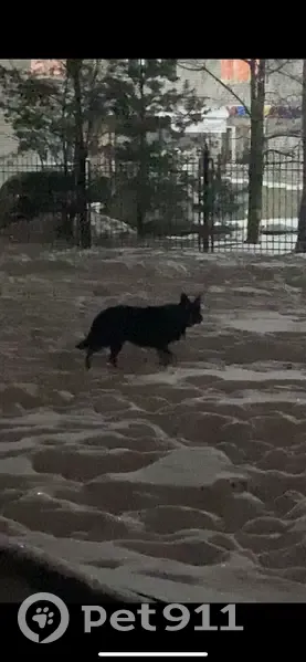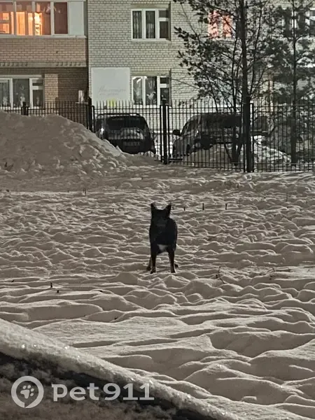 Заволга, проспект авиаторов. Найдена собака. По району бегает собака, девочка среднего размера, окрас черный на груди белое пятно, собака ходит с ошейником, боится людей близко не дает подойти, появляется каждый вечер в период с 23:00 до 01:00, может сидеть на месте и выть, прошу отозваться хозяина