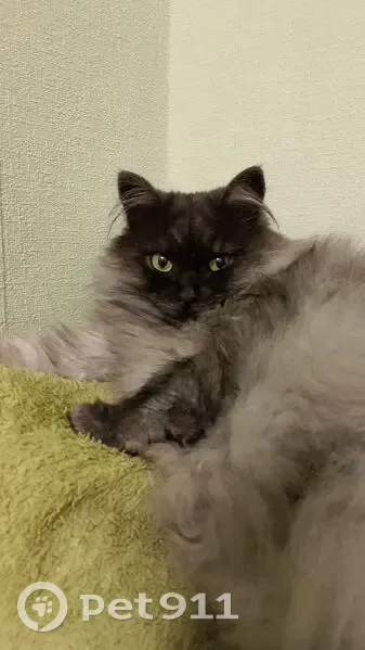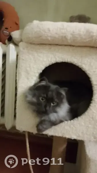 Кошка ласковая, контактная. Окрас черно-палевый, пушистая. Кошка выбежала на лестничную площадку, испугалась ремонта в подъезде и убежала со 2этажа на улицу.