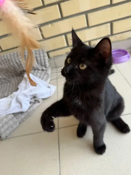 Котёнок выбежал на площадку по адресу Громова, 2а. Возможно, потом на улицу. Еще маленький и глупый. Зовут САЖИК. Пожалуйста, пустите его в тепло.