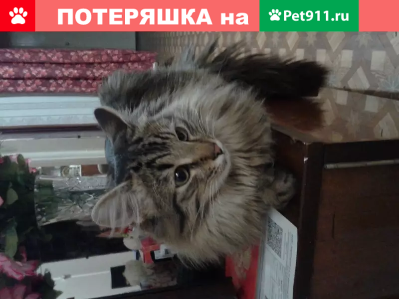 Кот отзывается на кличку Томас, окрас серый с пушистой шерстью, с головы по спинке темная полоса, пушистый хвост, возраст - 1 год, глаза зеленые. К чужим людям не подходит, всегда возвращался домой к вечеру. А 27 июня утром вышел гулять, как обычно, и не вернулся.