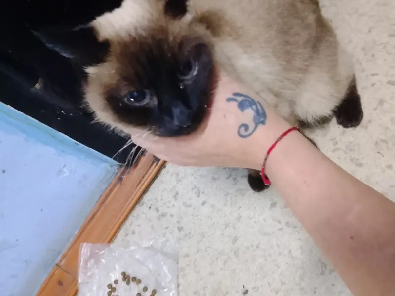 Окрас похож на сиамский, лапы, морда и хвост темно-коричневые, живот белый, спина серо-коричневая, глаза ярко-голубые. Очень ласковый и пугливый. Выпрыгнул с балкона первого этажа, никогда не сбегал, всегда сидел спокойно на окне. На 10 минут перед сном оставили отрытым балкон, кот пропал. Искать стали сразу по всем кустам и подвалам. Поиски до сих пор не прекращаем. Развесили объявления по всей округе.
