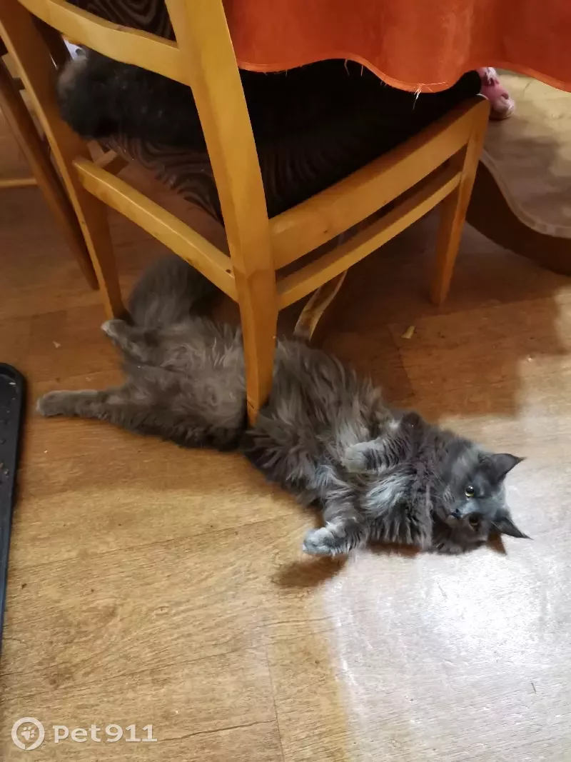 Пропал котик по кличке Вася. Возраст: 1 год, помесь Мейн-куна и Сибирского кота, мальчик, окрас тёмно-серый (дымчатый, однотонный), длинношерстный, имеются кисточки на ушах. Предположительно убежал через дверь 6-го июля, когда приезжие родственники пошли гулять с собакой, но мог так же выпасть из окна.